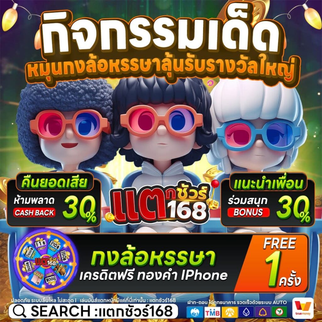 แตกชัวร์ 168 วอเลท กงล้อหรรษา กิจกรรมเด็ด หมุนกงล้อหรรษาลุ้นรับรางวัลใหญ่มากมาย ไม่ว่าจะเป็น รถ PCX มือถือ Iphone17 Pro max ทองคำและเครดิตฟรีอีกมากมาย เว็บสวยโหลดไว อลังการ ลูกค้าต่างรีวิว ชมว่าเล่นเเตกง่ายได้รางวัลใหญ่เยอะ ค่ายนี้จำไว้ให้ดี เพราะเป็นเว็บสล็อตที่แตกง่าย จ่ายจริง เว็บตรง ฝากถอนไม่มีขั้นต่ำ รองรับทุกระบบ ทุกธนาคาร รองรับมือถือทุกรุ่น